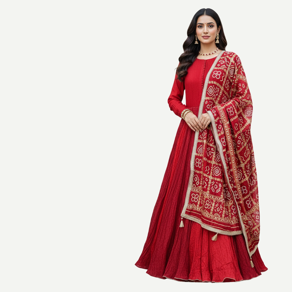 Crushed Silk Lehenga with Heavy Kurta & Beautiful Dupatta