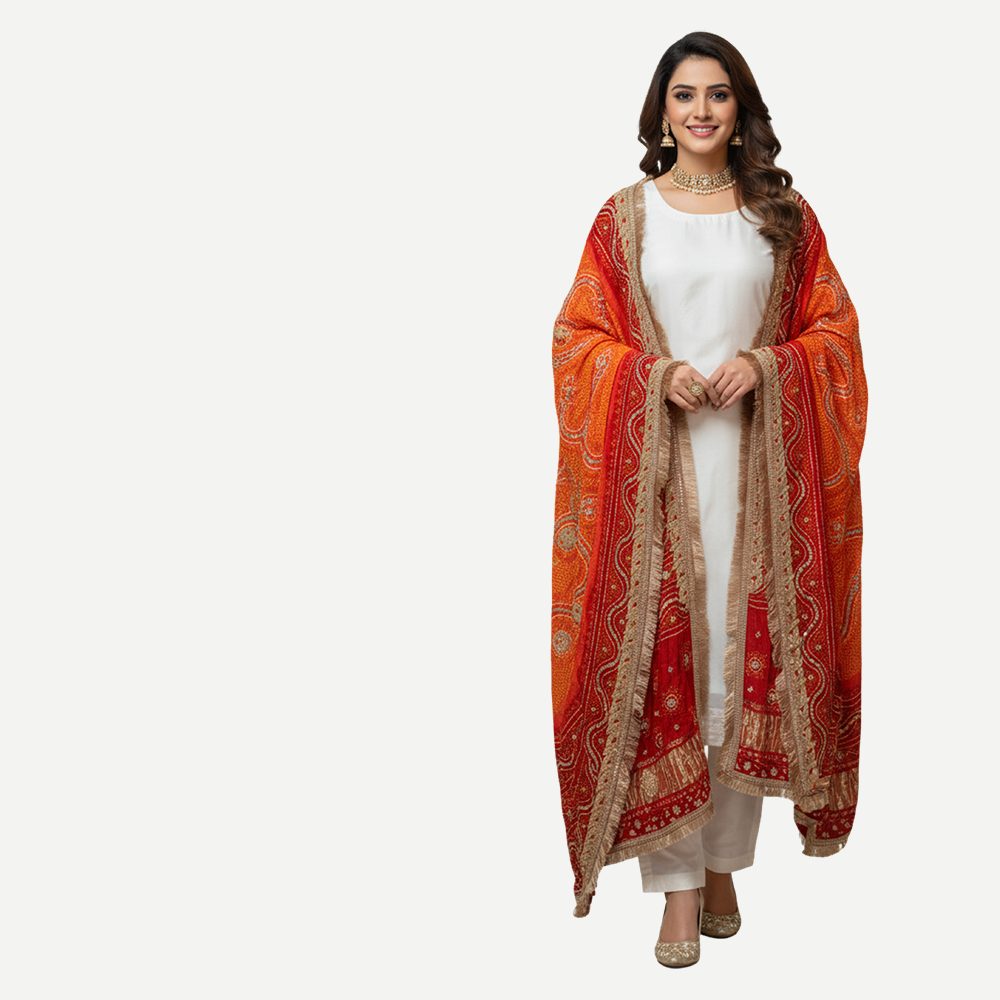 Bandhej Saree with Stunning Tikki Marodi Handwork