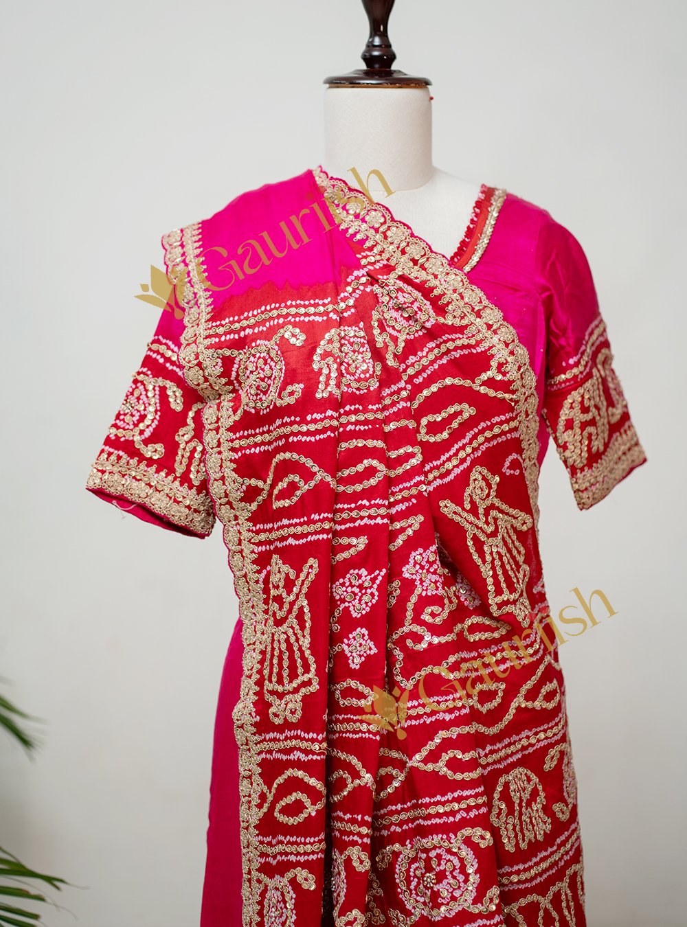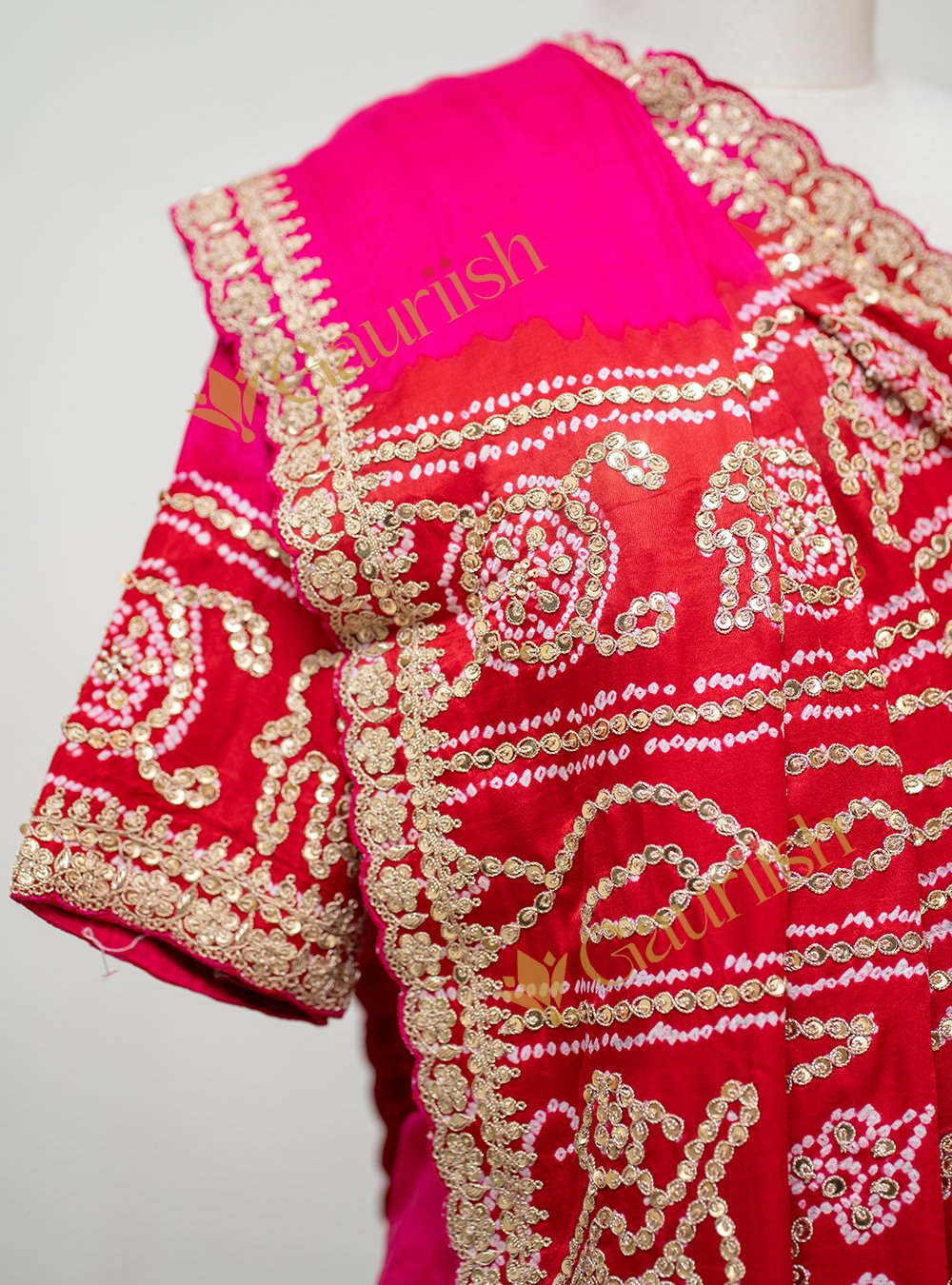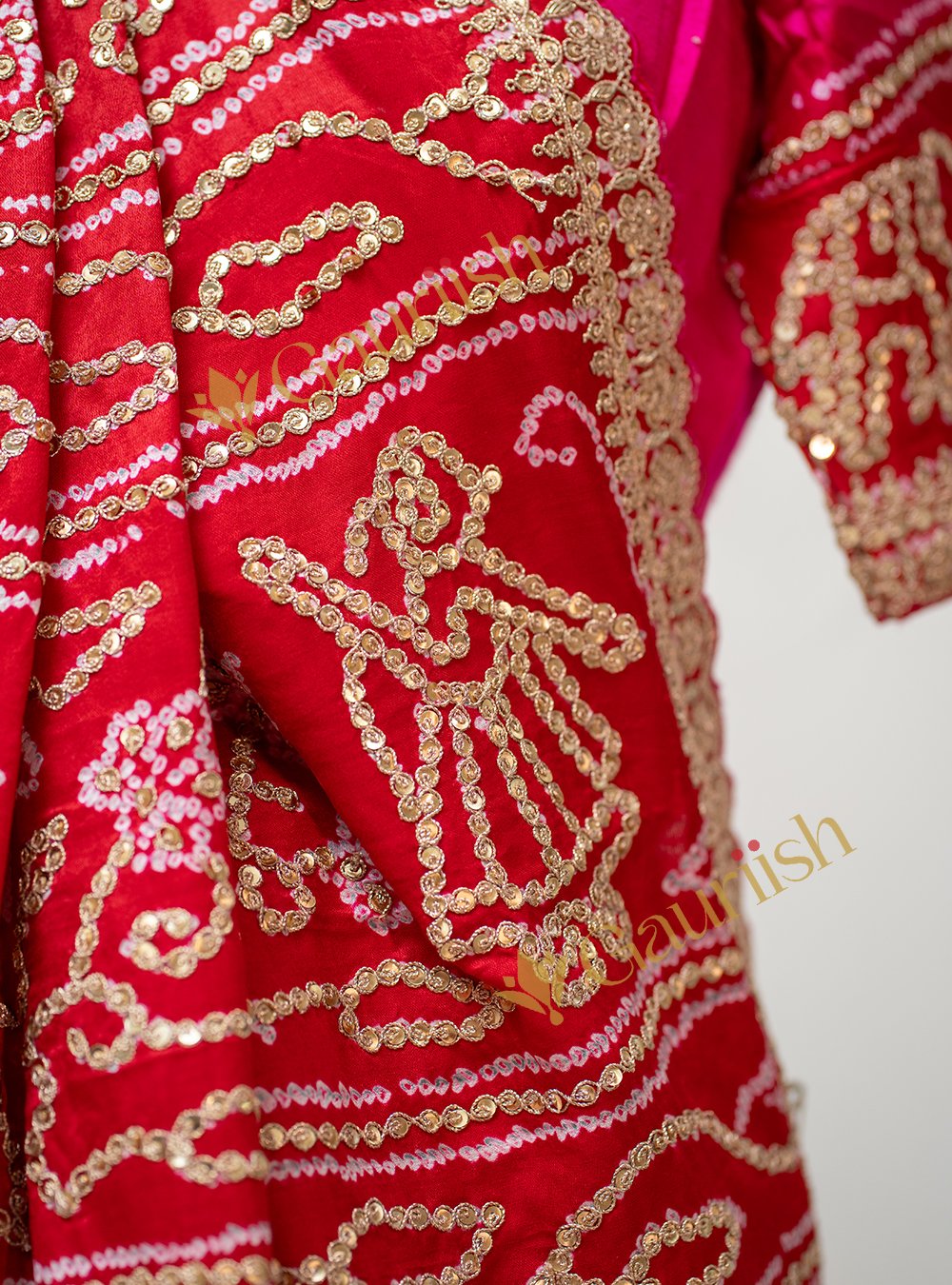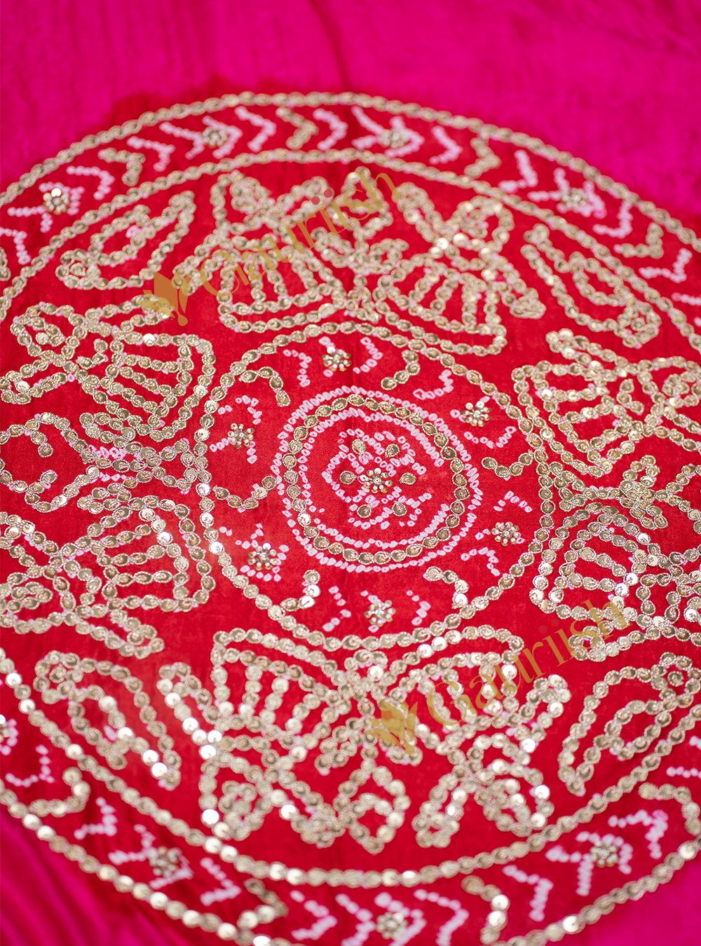 Bandhej Saree with Stunning Tikki Marodi Handwork