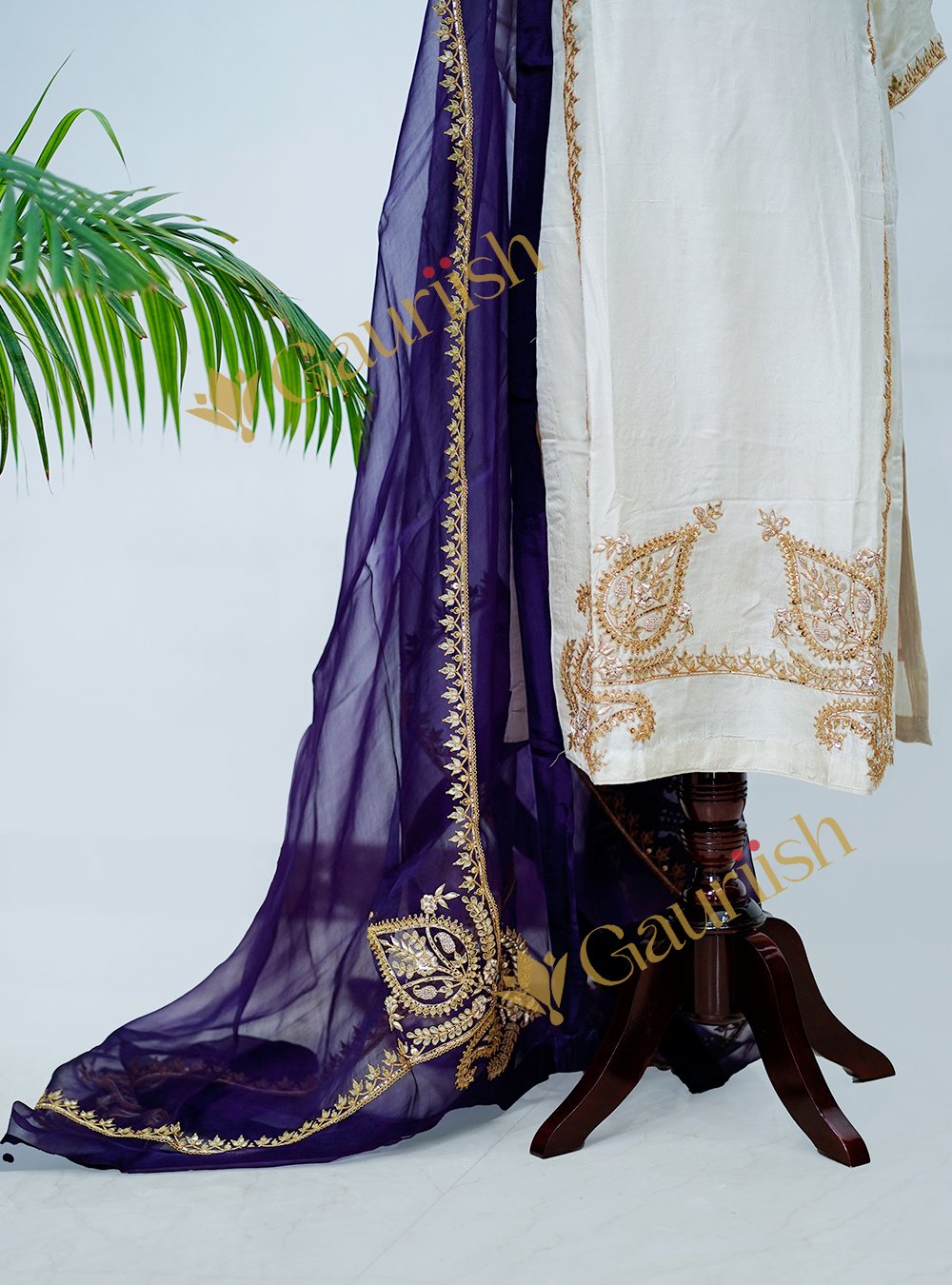 Exude understated elegance with our Cream Silk Suit, paired with a delicate Organza Dupatta.