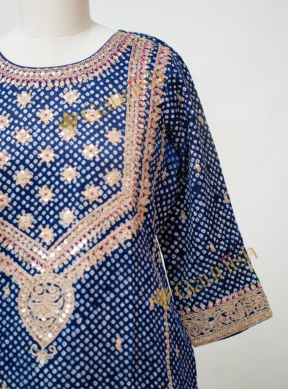 Crafted from luxurious Gajji silk, this Gajji Silk Kurta Set with Finest Tikki Marodi Work showcases intricate Tikki Marodi embroidery that adds rich texture, traditional charm, and refined sophistication. Perfect for weddings, festive celebrations, and cultural occasions, it blends classic craftsmanship with a timeless ethnic silhouette.