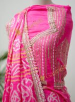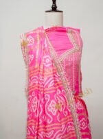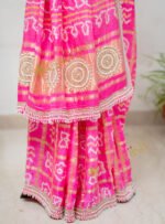 Embrace regal tradition with our Gharchola Saree, exquisitely adorned with intricate Moti Tikki Marodi work.