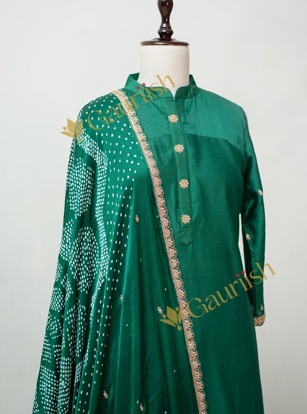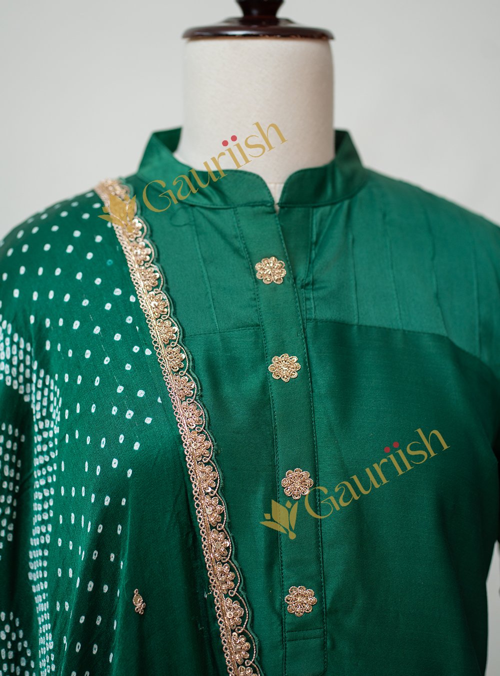 Made from luxurious Gajji silk, this Green Gajji Silk Suit Set features a smooth texture, graceful drape, and a vibrant green hue that exudes sophistication. Perfect for weddings, festive celebrations, and special occasions, it blends classic Indian craftsmanship with refined contemporary style.