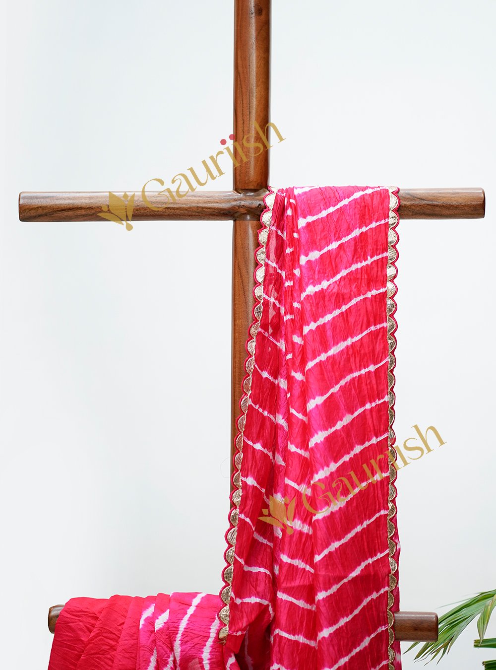 Embrace the beauty of traditional elegance with our Lehariya Saree, gracefully adorned with Tamba Patti work.