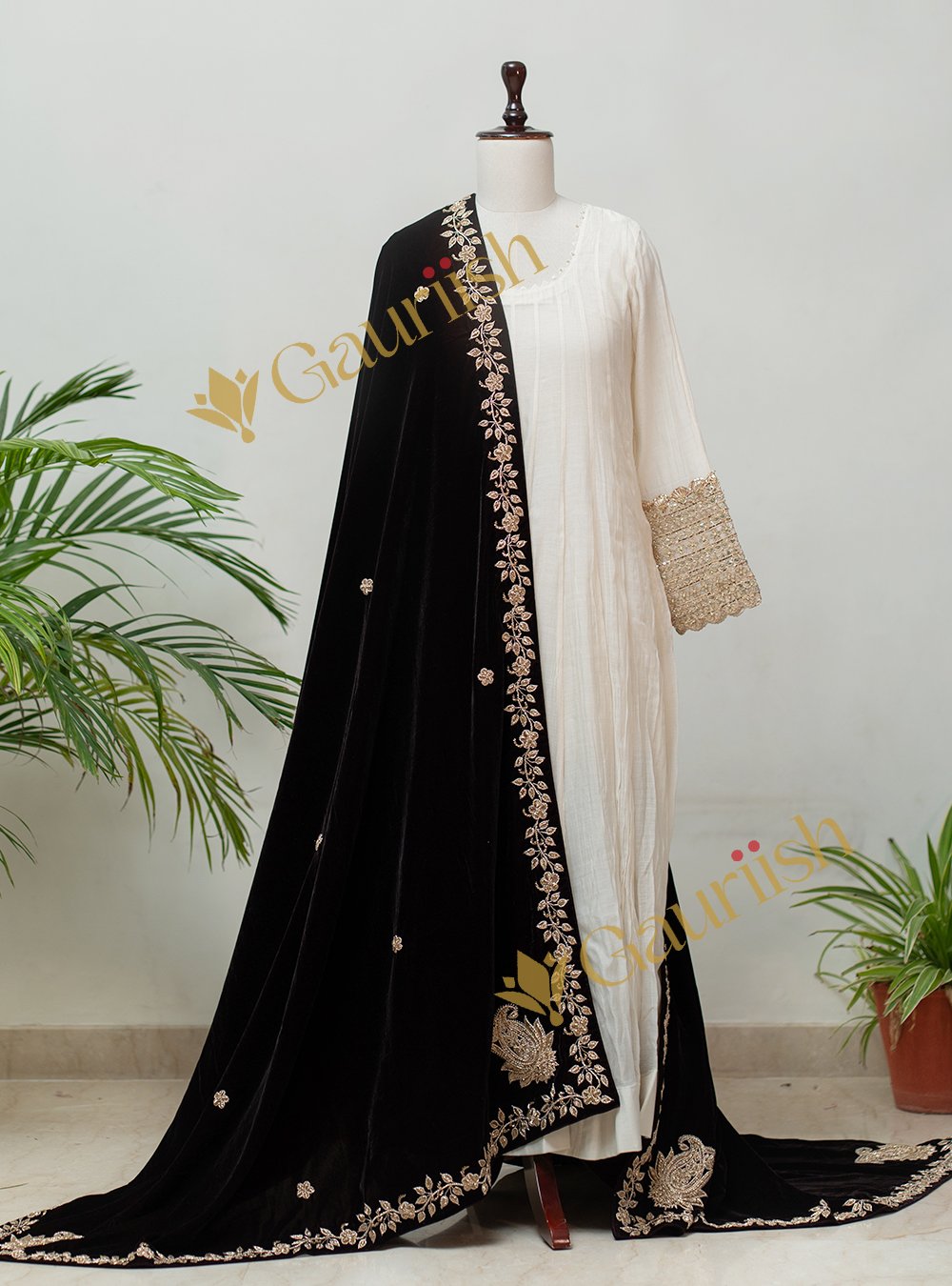 Light Brown Cape Dress with Marodi and Tikki Work