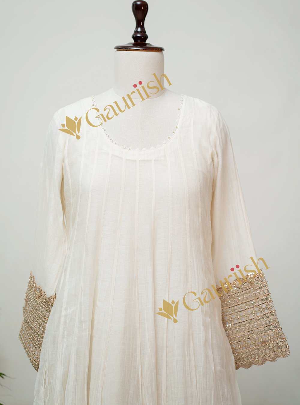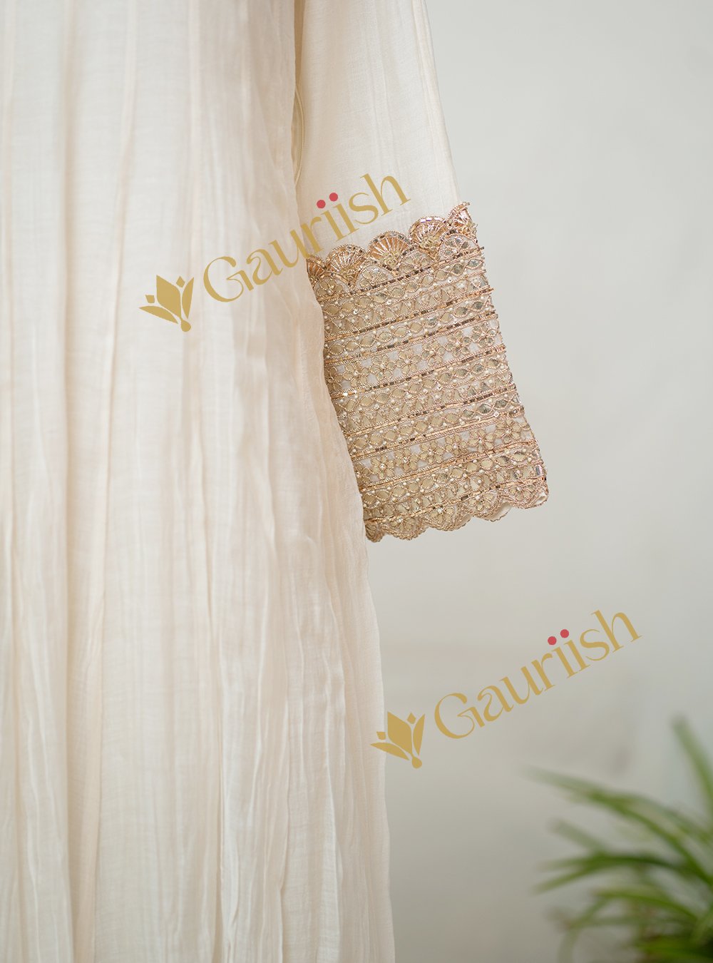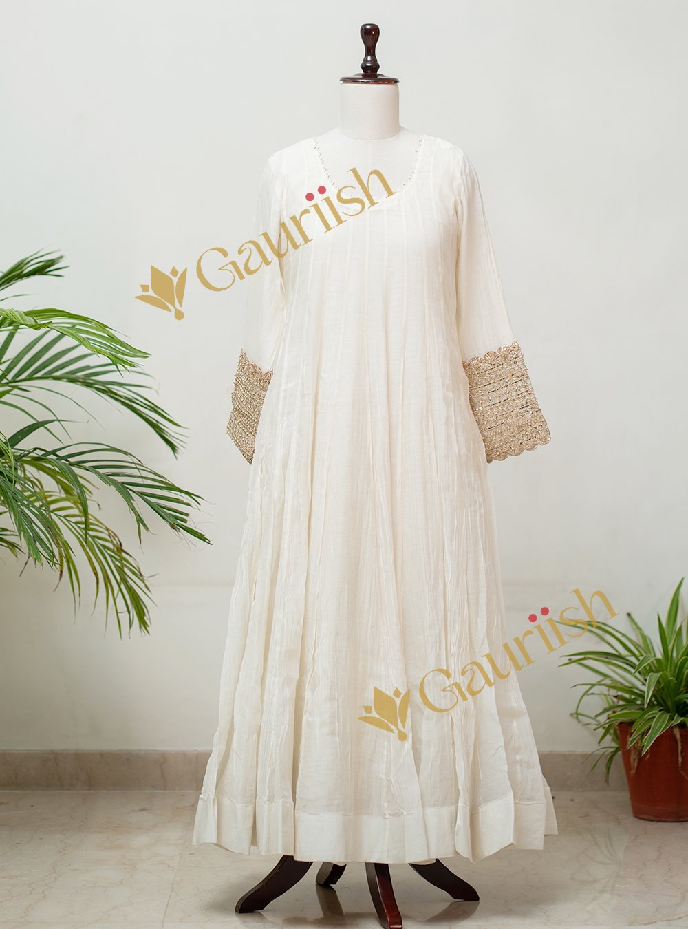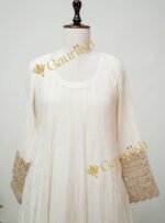 Mul Chanderi Anarkali Set with Heavy Patola Dupatta & Tamba Patti Sleeve Work