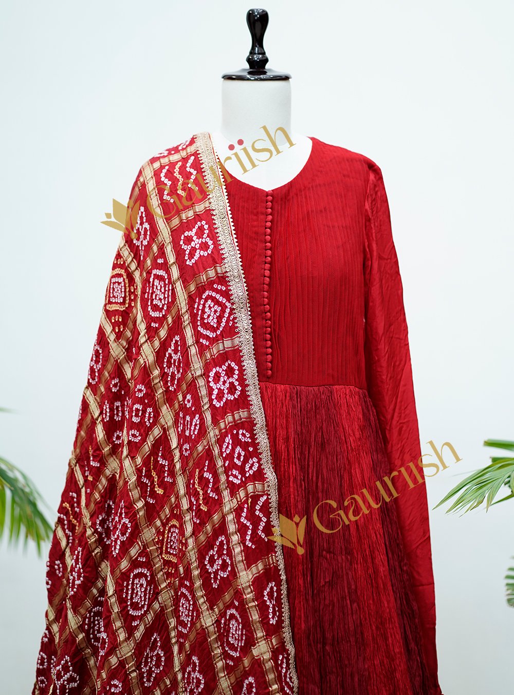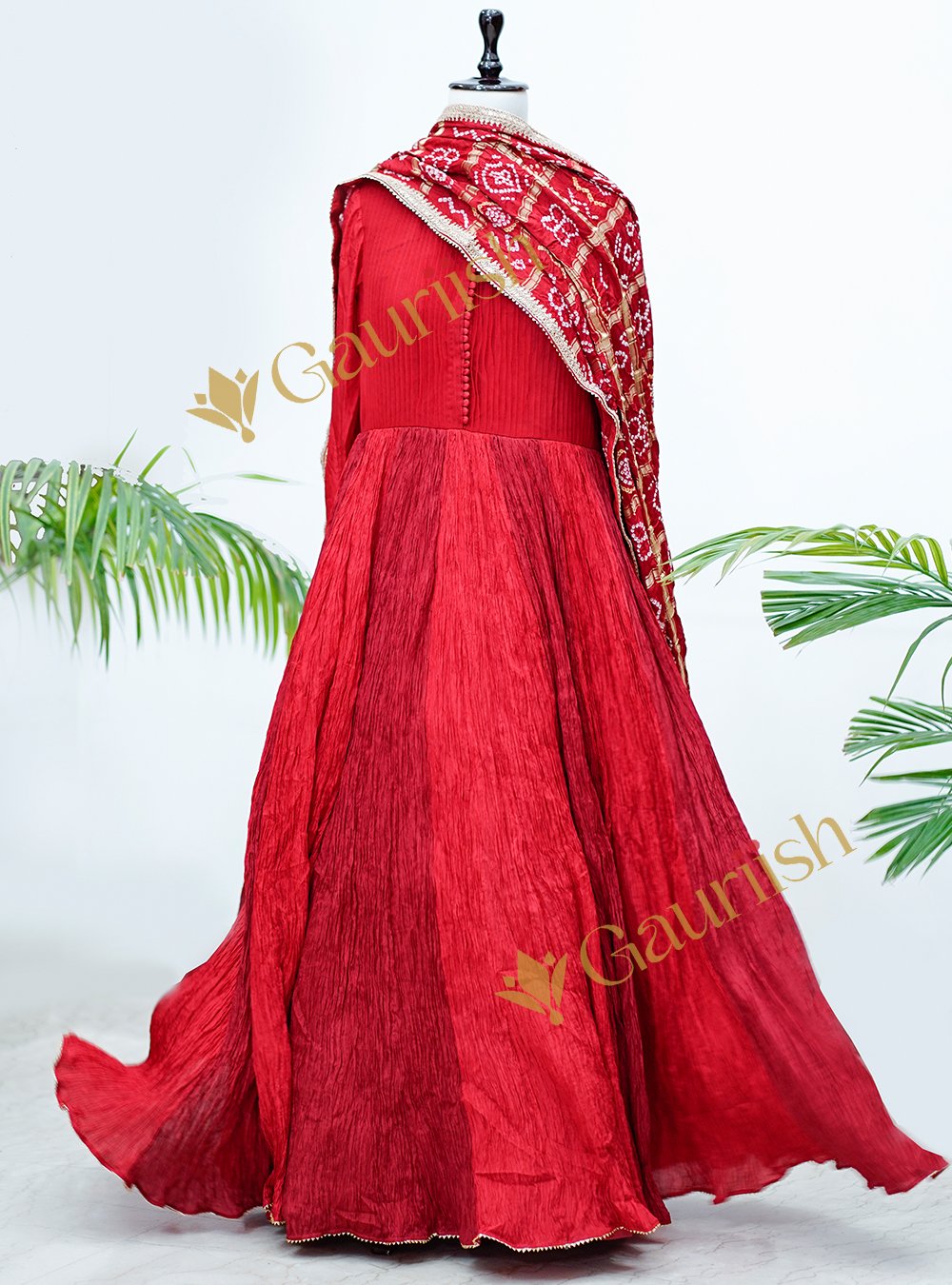 Red Anarkali with Gajji Silk Dupatta and Exquisite Gotapatti & Marodi Work