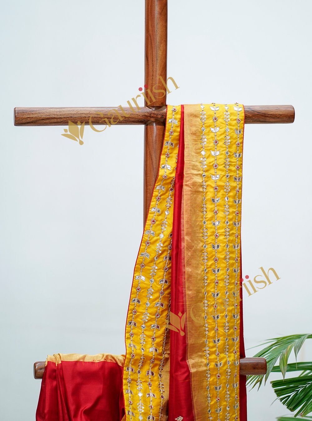 Red & Yellow Saree with Gotta Patti and Zardozi Art crafted to reflect rich Indian heritage, this saree features intricate Gotta Patti detailing and luxurious Zardozi embroidery that add a regal, festive charm. The striking red and yellow palette makes it an ideal choice for weddings, festive occasions, and cultural celebrations—where timeless craftsmanship meets bold elegance.