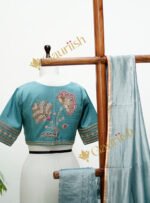Radiate understated luxury with our Tissue Saree paired with a finely Embroidered Blouse.